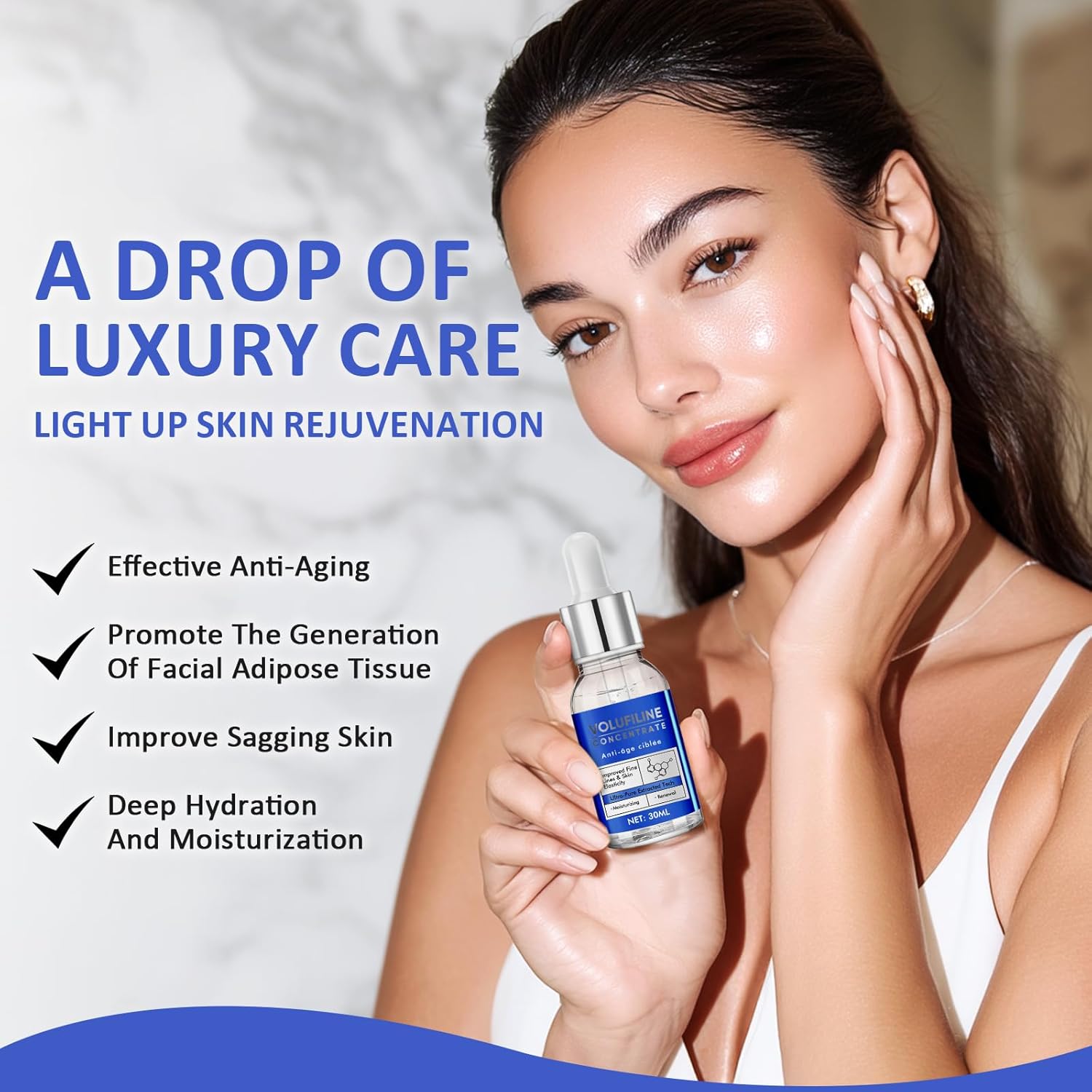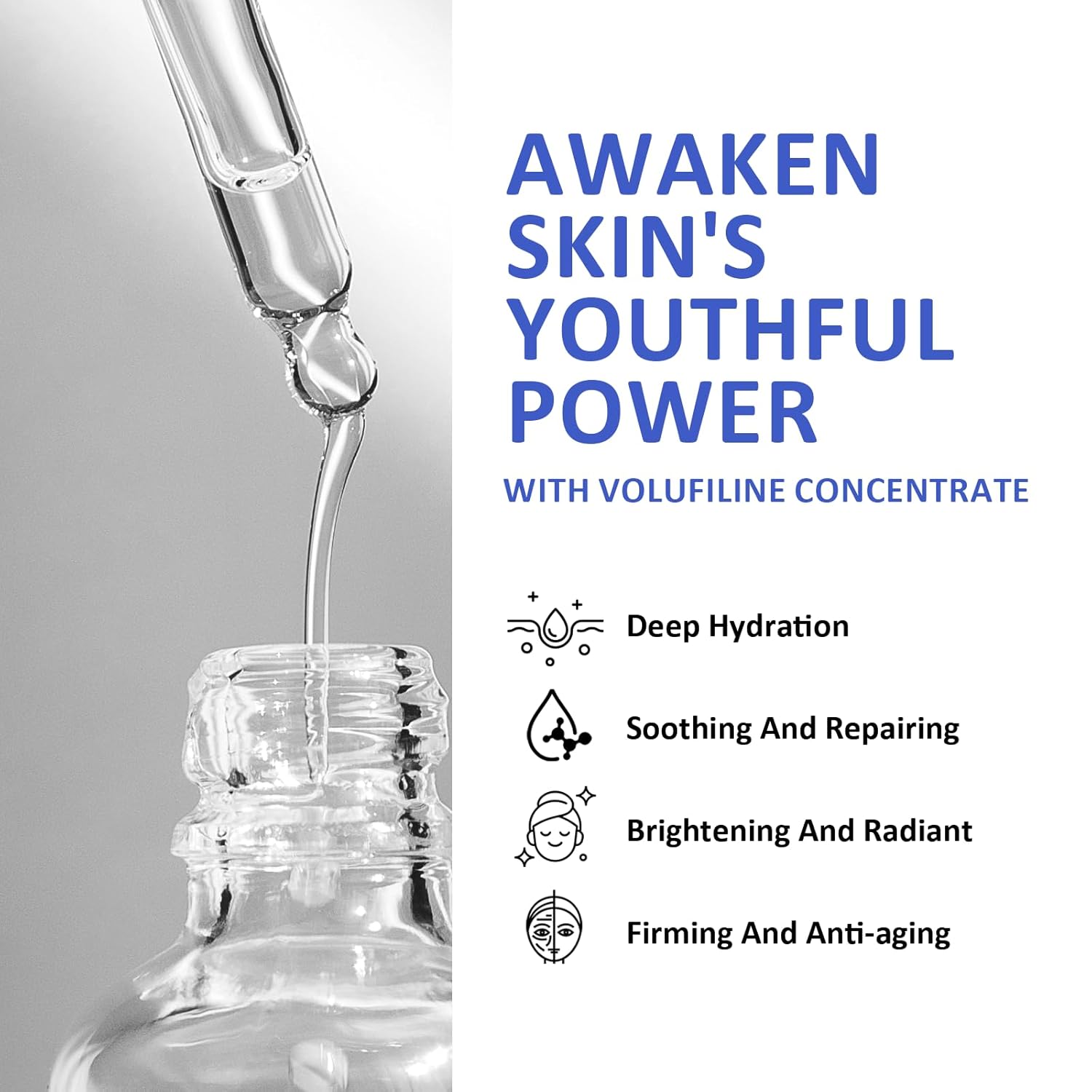[See the Change Brought by Volufiline]-Researchs show that Volufiline promotes the generation of facial adipose tissue, effectively filling depressions associated with aging or collagen depletion, thereby improving skin sagging and enhancing skin firmness, and overall contour. Our volufiline serum delivers visible results for a youthful glow.