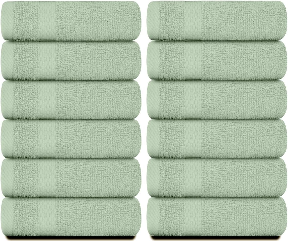 HOTEL COLLECTION – 12-Piece Washcloths are generously Sized at 13×13 inches. Each towel is 100% combed cotton – soft, durable, quick-dry, and wonderfully absorbent. It is more absorbent than any Turkish Cotton Face Towel.