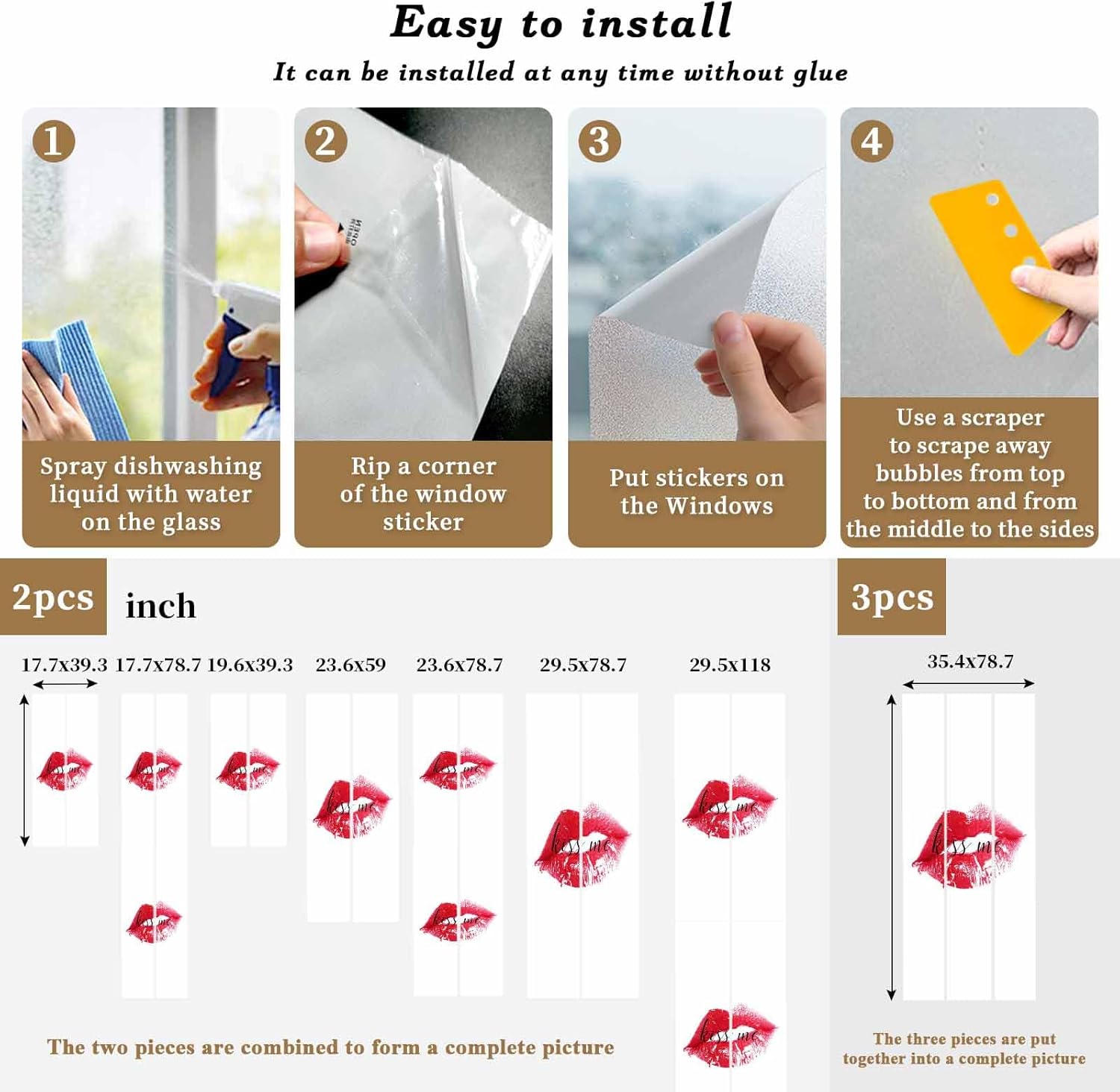 Static Cling Window Film: This glass window film uses static cling, just spray some soapy water or dishwashing liquid water on the flat, clean, smooth glass surface to adhere firmly. Our removable window tint can be easily removed without leaving any marks, allowing you to change the decoration at any time