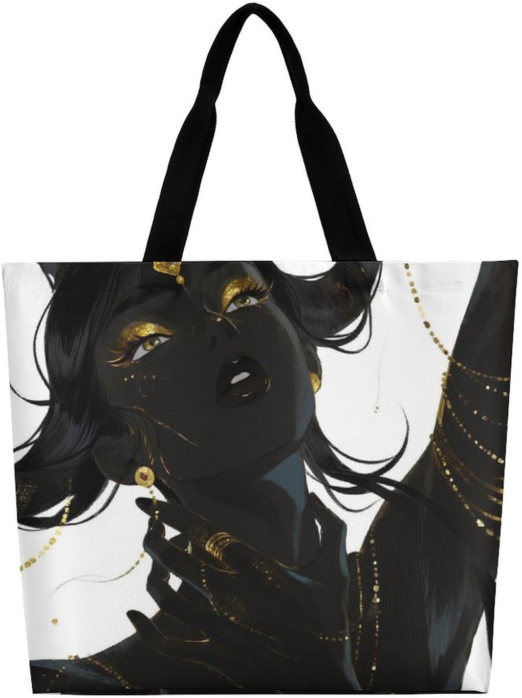 Be the first to review “Women Retro Handbag for Travel Business Shopping, Anime African Nude Women with Gold Eye Shadow Polyester Shoulder Bags Big Capacity Handle Satchel Bags Travel Bag Beach Bag”