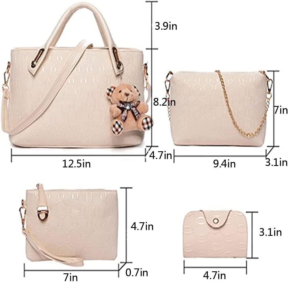 Women Fashion Handbag 4pcs Set PU Tote Shoulder Crossbody Bag Satchel Purse
