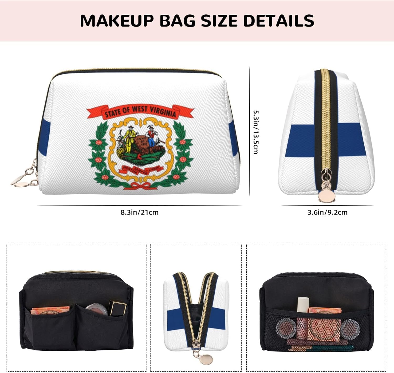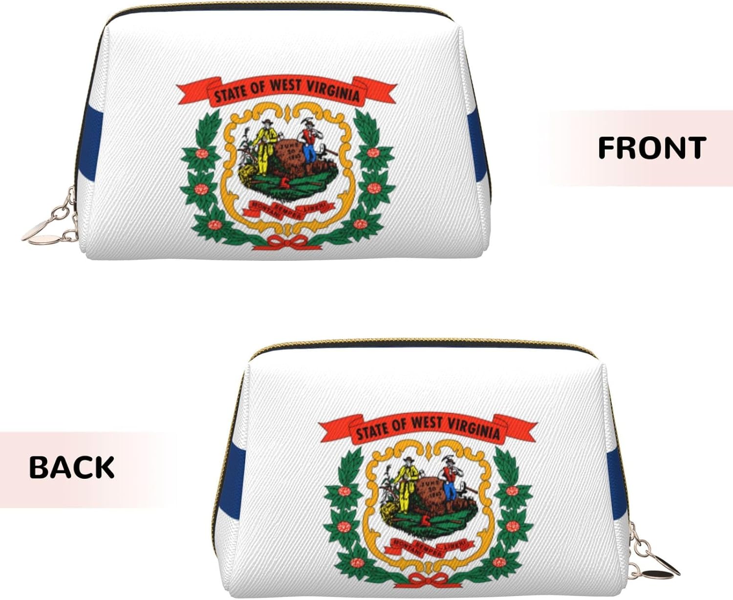 Wyoming State Flag Patterned Leather Cosmetic Bag – Perfect for Carry-On or Home Organization, West Virginia Flag, One Size