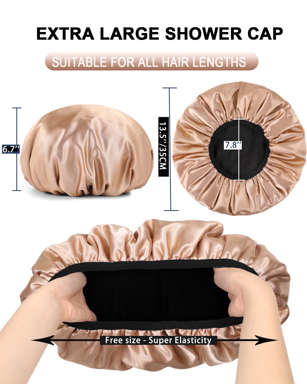 【Extra Large size】The large shower cap is 12.6 inches in diameter, suitable for all hair lengths and thicknesses, such as curly hair, long hair, braids, etc.