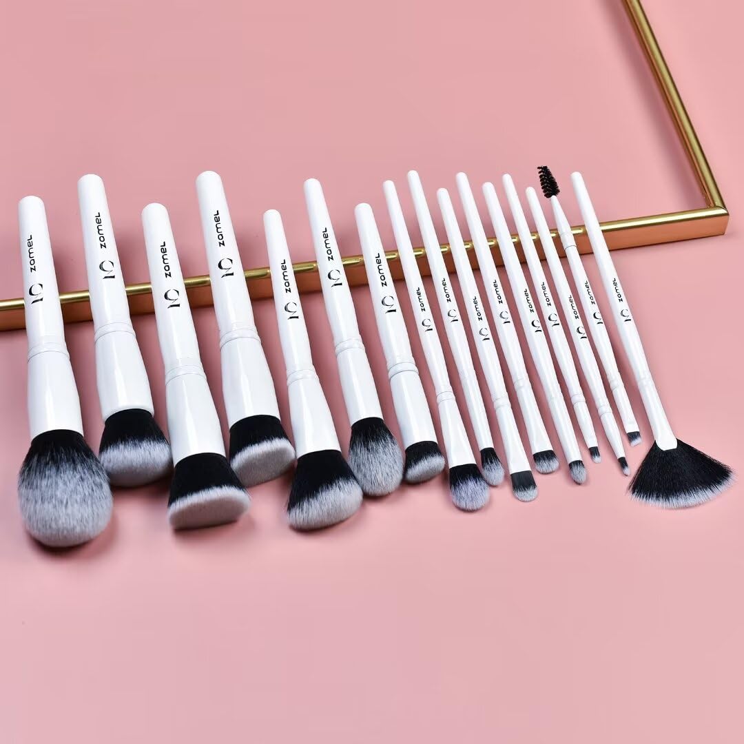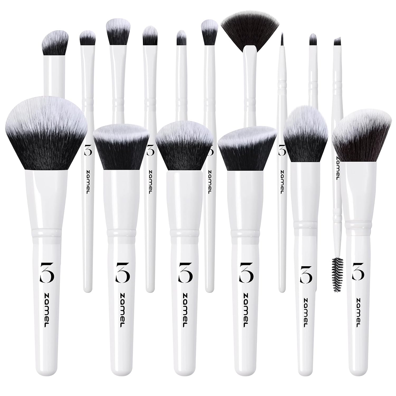 ZAMEL Makeup Brush Set With Travel Pu Holder,16 Piece Makeup Brushes For Women Ultra soft hair Contains Large Powder, Eyeshadows White Brush Set Tools