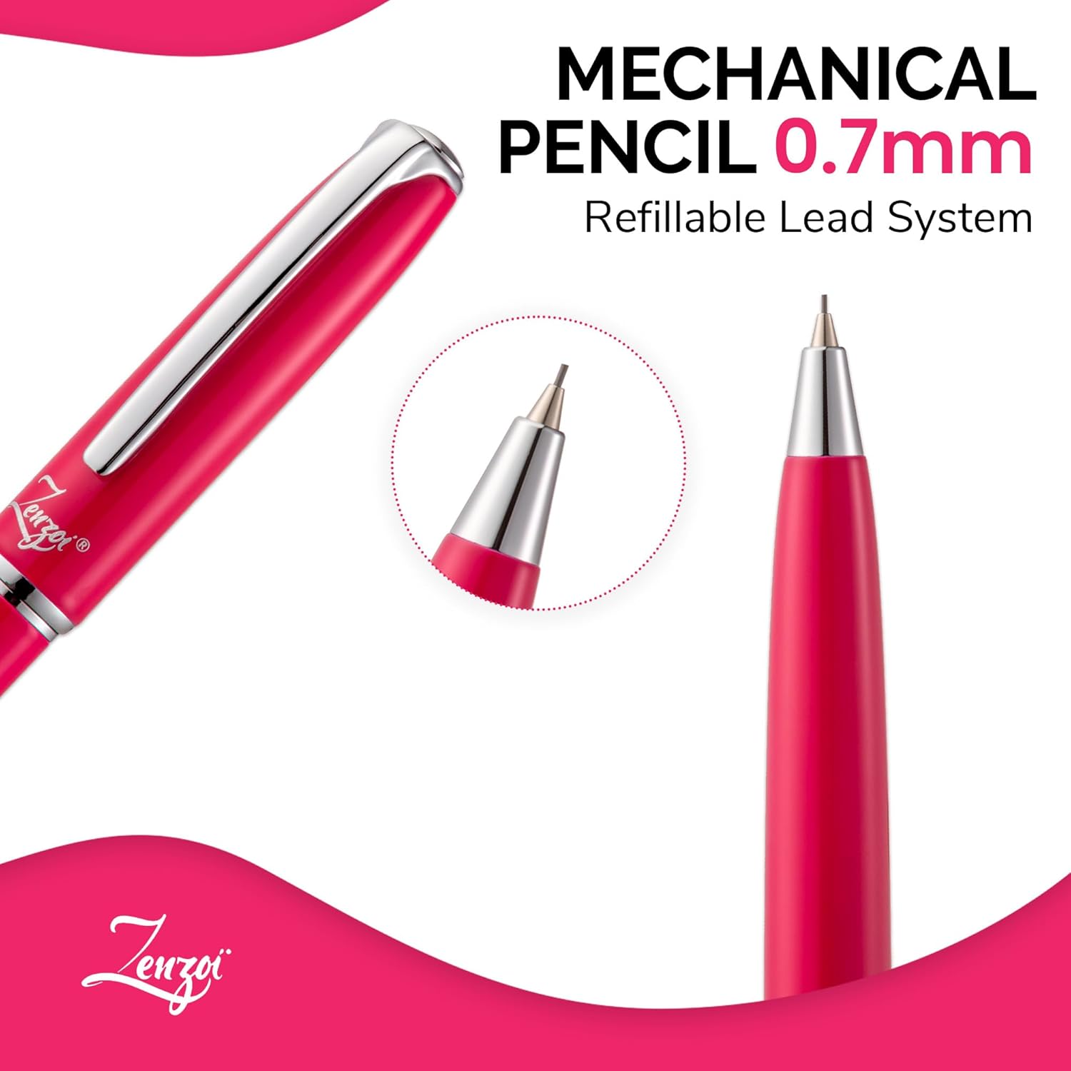 CONFORTABLE WRITING – ZenZoi designed the refillable mechanical pencil 0.7 around prestigious looks and flawless performance. With a pink color scheme full metal thin barrel and Schmidt inner working, the beautiful mechanical pencil set delivers enjoyable writing, drawing, or journaling.