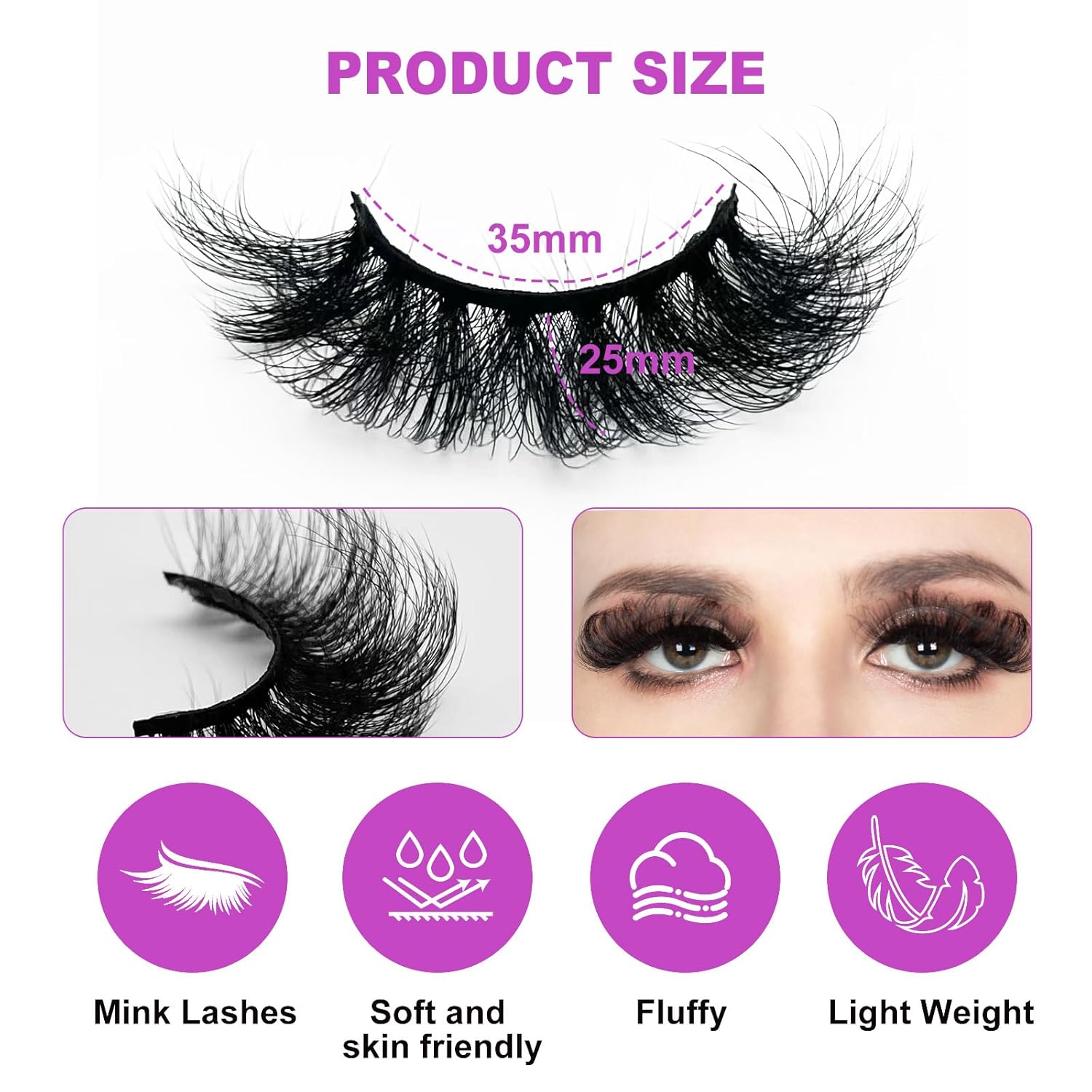 [100% mink hair] The eyelashes are naturally shiny, very soft, smooth, close to the skin, dense, fluffy and soft. Stereoscopic design, fully showing your eyes,Dense, 7 pairs (25mm)